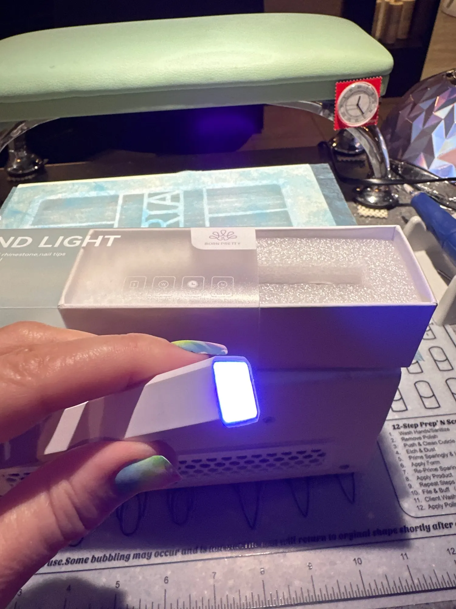 - Cure: Place under UV lamp for 60 seconds, twice.